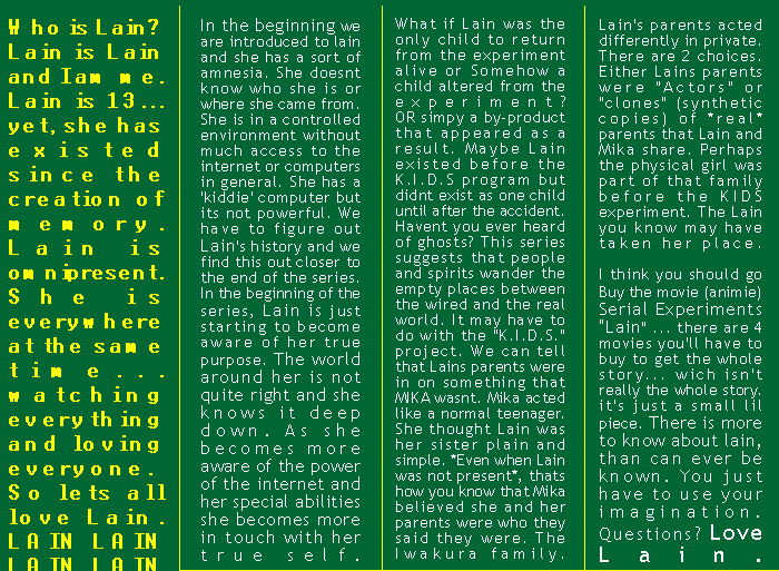 Images Copyright Pioneer and/or Yoshitoshi ABe unless otherwise noted. Website design by Imperfect Creations - imperfectcreations.com